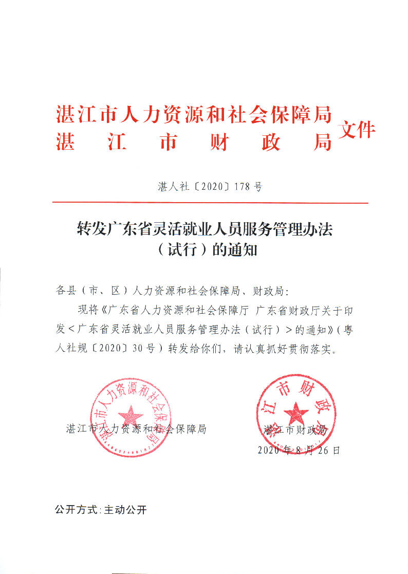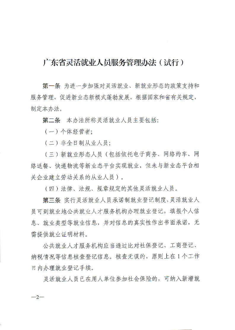 转发广东省灵活就业人员服务管理办法(试行)的通知
