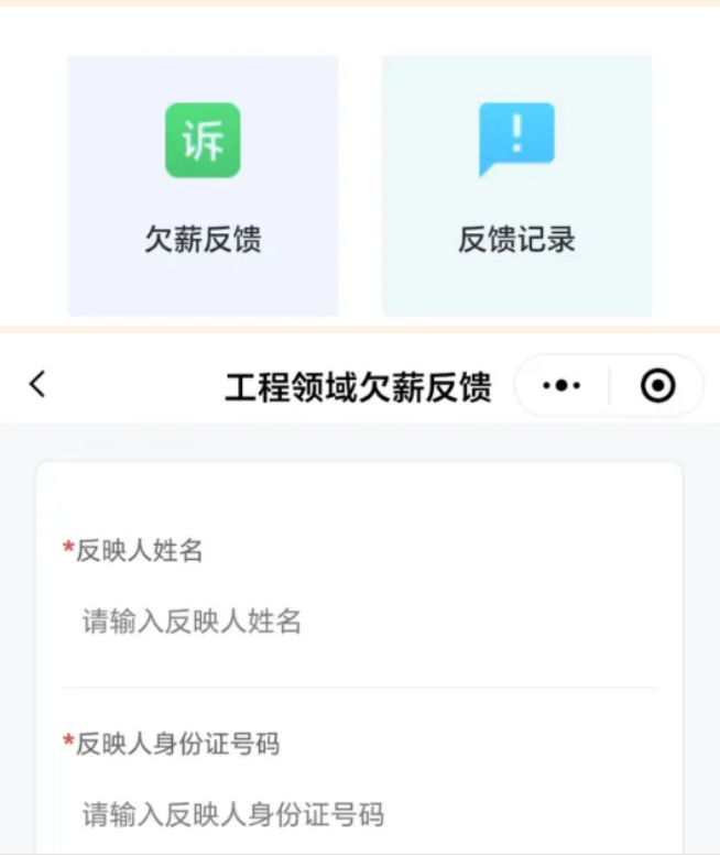 点击“欠薪反馈”—选择“非工程领域欠薪反馈”或者“工程领域欠薪反馈”