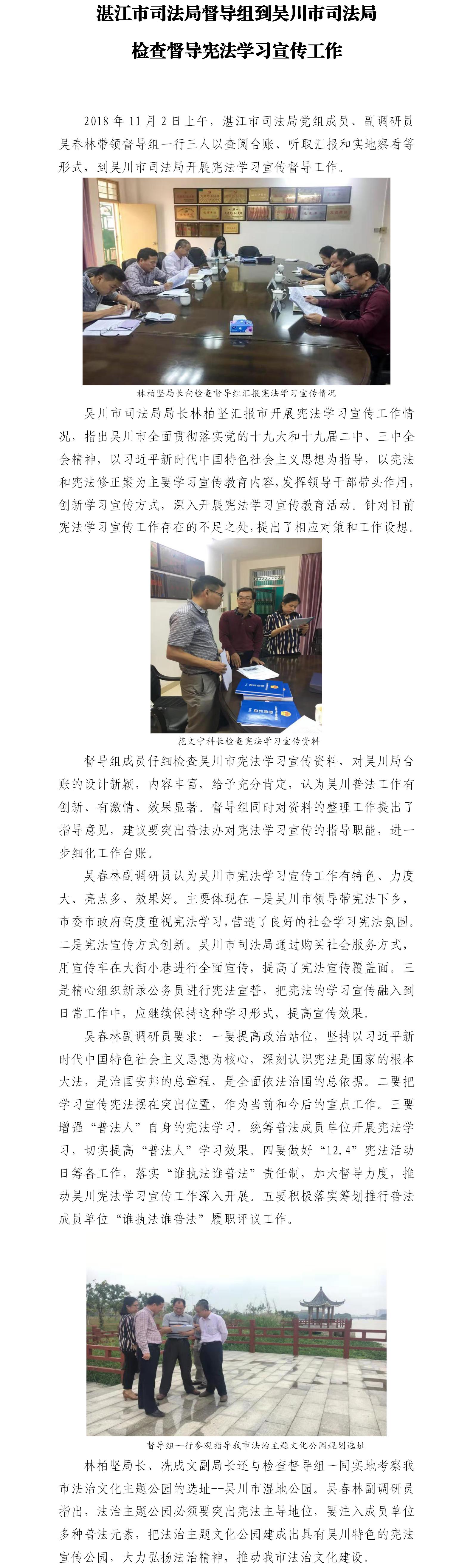 湛江市司法局督导组到吴川市司法局检查督导宪
