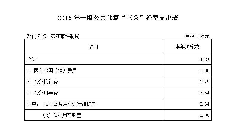 2016年湛江市法制局“三公”经费预算公开