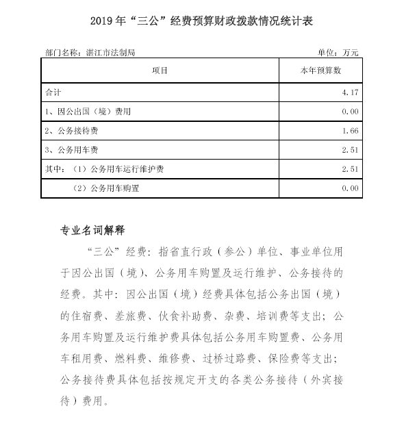 2019年湛江市法制局“三公”经费预算公开