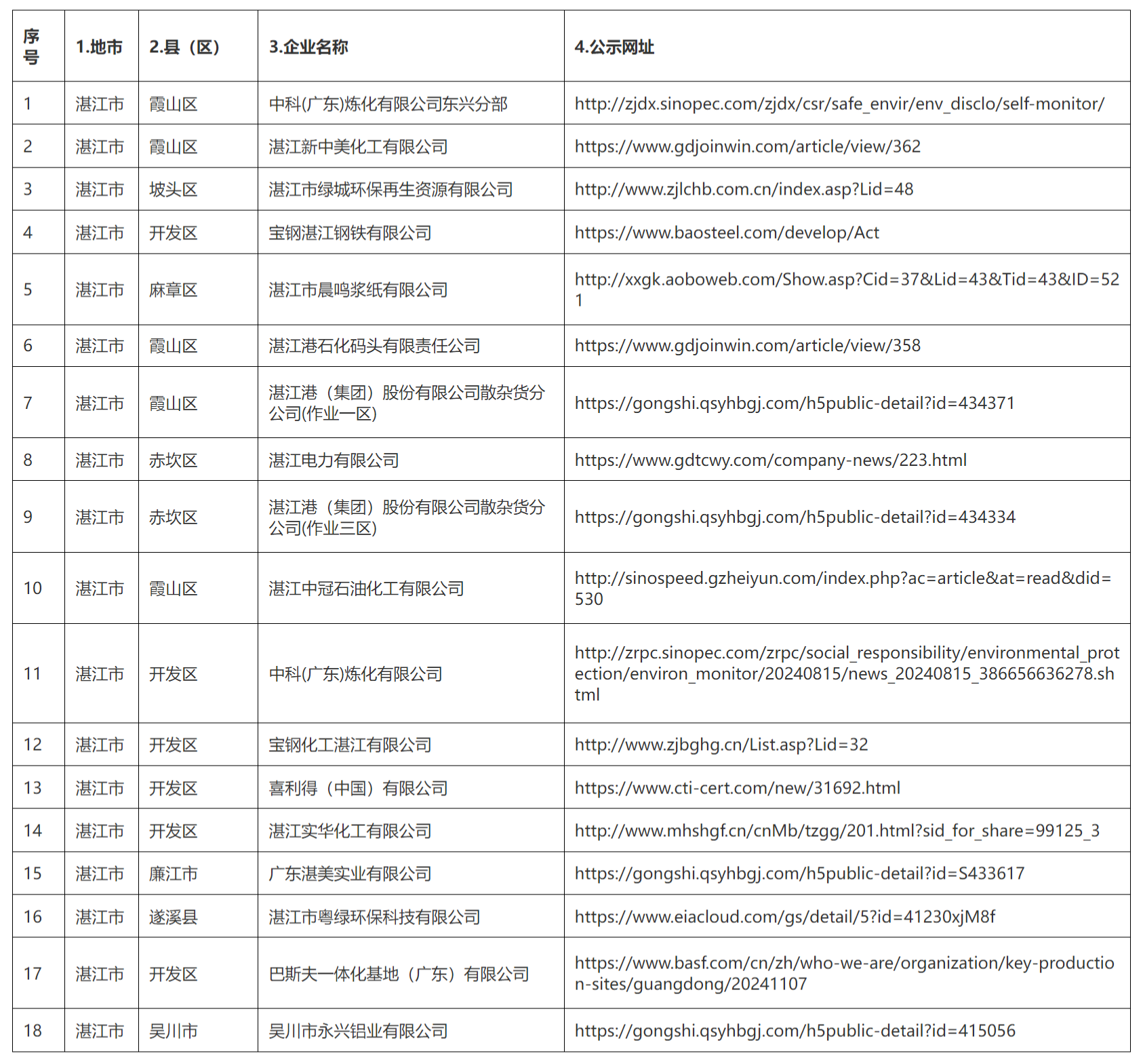 湛江市土壤污染重点监管单位土壤和地下水自行监测结果公开(截至2024年12月31日)