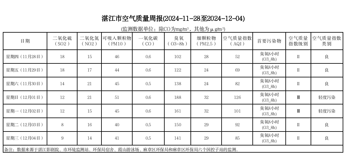 湛江市空气质量周报(2024-11-28至2024-12-04)