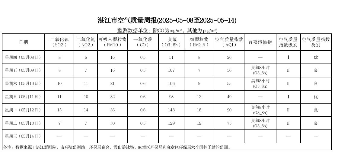 湛江市空气质量周报(2025-05-08至2025-05-14)