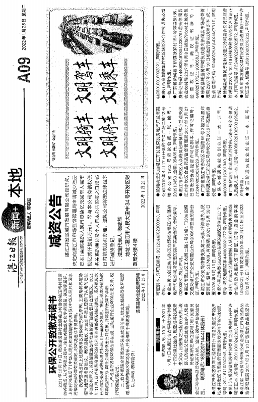 湛江市2022年部分生态环境违法主体登报公开道歉
