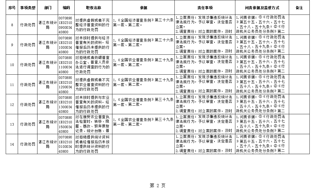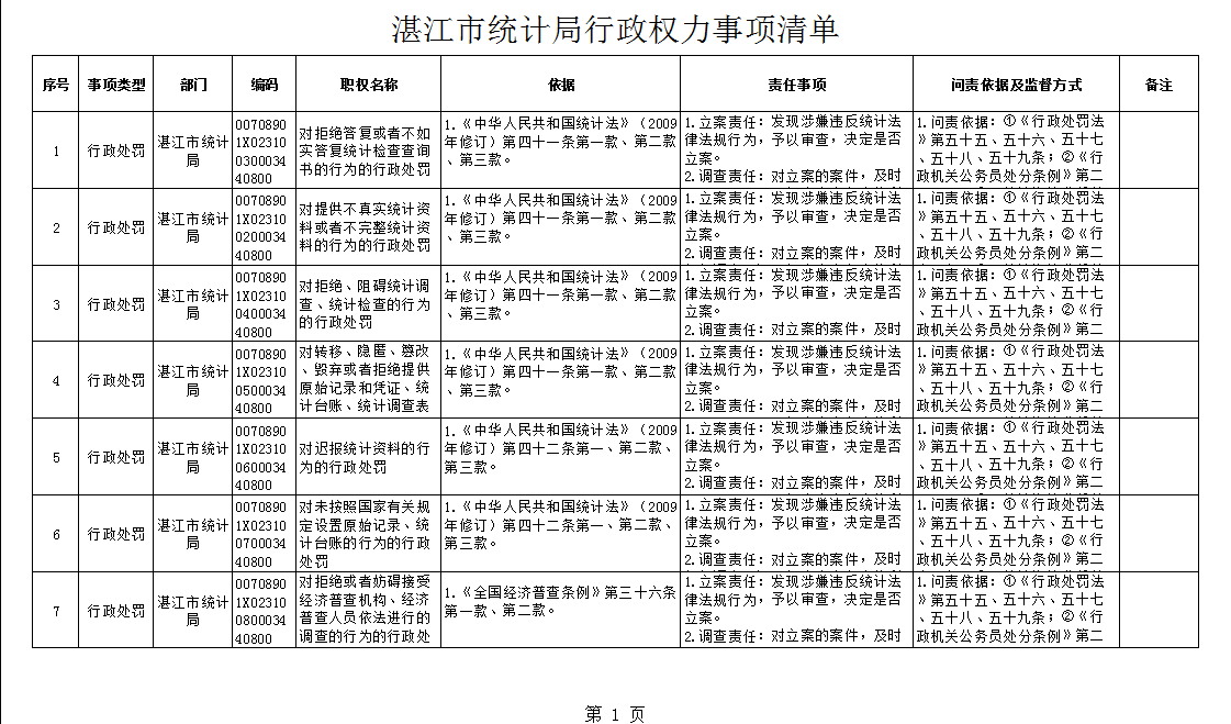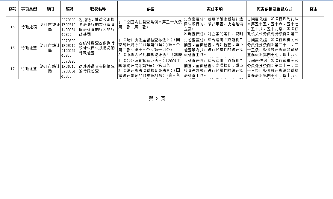 2018年湛江市统计局行政权力事项清单