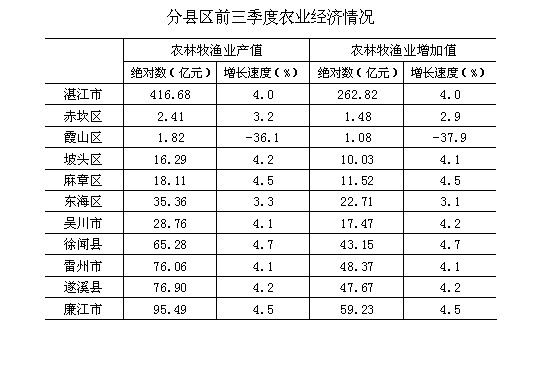 2013年湛江市前三季度农业经济形势分析(2013.10.22)