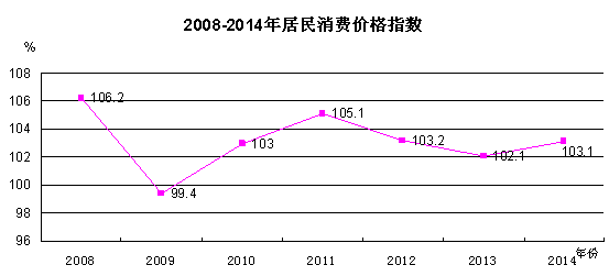 全年市区居民消费价格总水平比上年上涨3.1%。分类别看,食品类价格上涨5.2%。其中,粮食上涨3.4%,肉禽及其制品上涨6.9%,蛋类上涨4.9%,水产品上涨7.8%,菜类下降1.4%;烟酒类价格基本持平;衣着类价格上涨1.4%;家庭设备用品及维修服务价格上涨1.3%;医疗保健个人服务类价格上涨1.0%;交通和通信类价格上涨0.3%;娱乐教育文化用品及服务价格上涨2.7%;居住类价格上涨2.8%。工业生产者出厂价格指数下降2.3%。