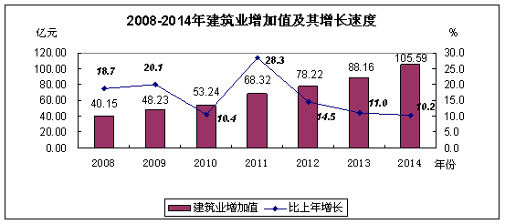 全年建筑业完成增加值105.59亿元,比上年增长10.2%;全市资质等级以上建筑企业131家,实现总产值428.44亿元,比上年增长28.7%;房屋建筑施工面积5988.40万平方米,增长87.9%。