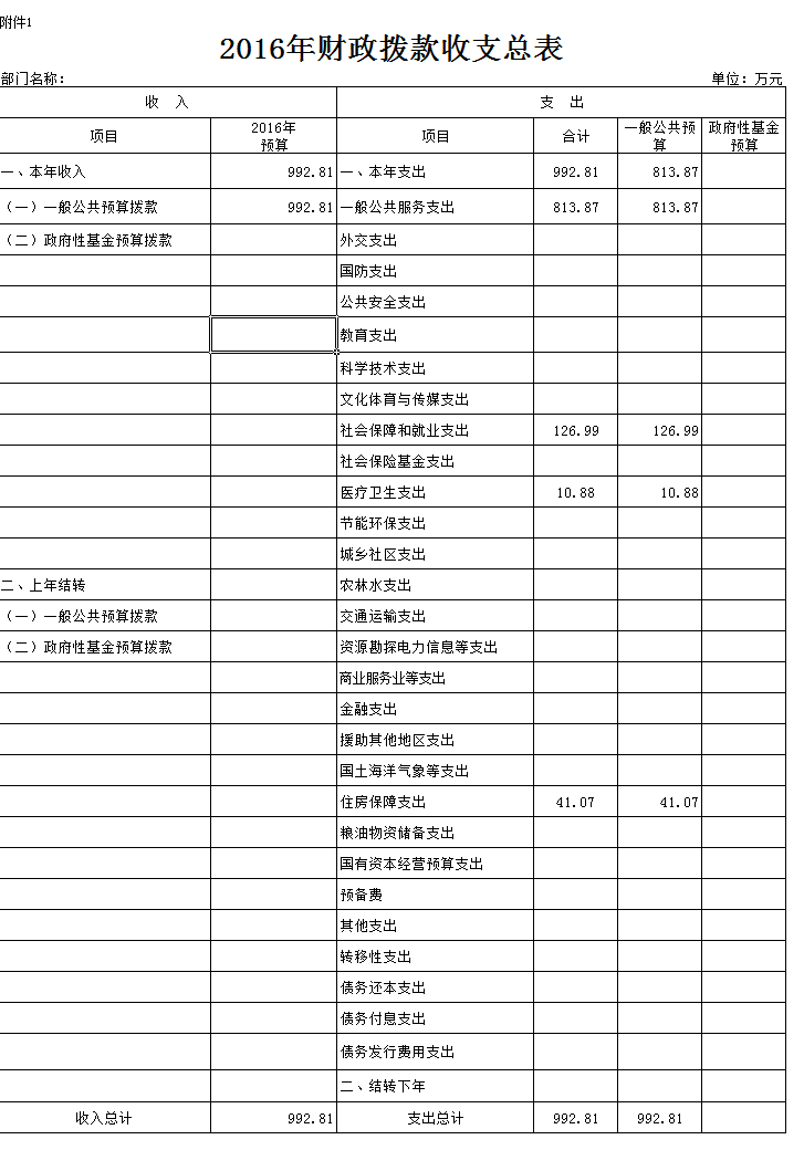 一、 2016年财政拨款收支总表