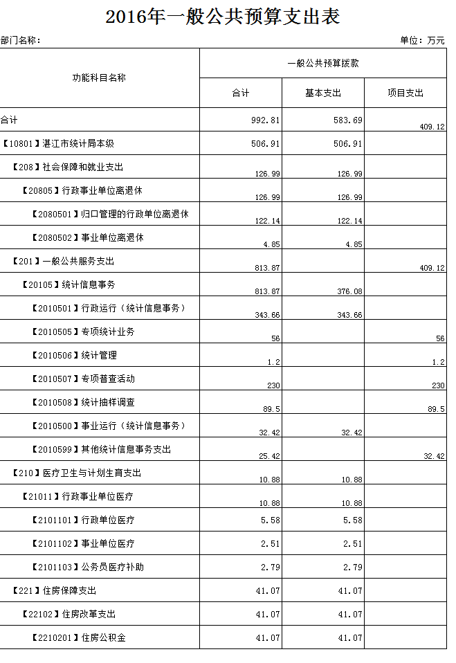 1.本部门预算为汇总预算,包括:湛江市统计局本