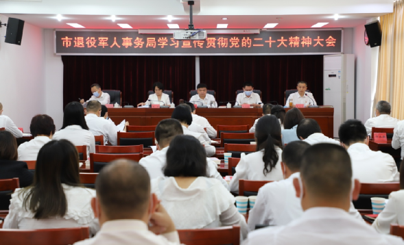 会议要求,要推进学思践悟,全面掀起学习宣传贯彻党的二十大精神热潮。各党(总)支部要精心组织好本支部学习宣传贯彻工作,通过学习中心组学习、党支部学习、集中专题研讨等方式系统、全面、深入学习党的二十大精神。充分利用媒体、网络等宣传平台、传播载体,全方位宣传、多角度报告、深层次解读党的二十大精神,营造一股浓厚的学习氛围。要深入开展调查研究,把贯彻落实党的二十大精神与工作实际紧密结合起来,用党的二十大精神指导工作,推动党的二十大精神在退役军人事务领域落地生根、结出丰硕成果。