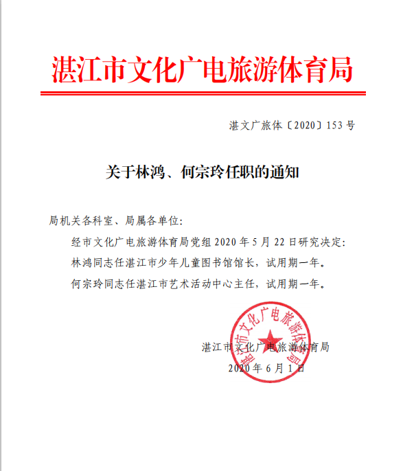关于林鸿、何宗玲任职的通知