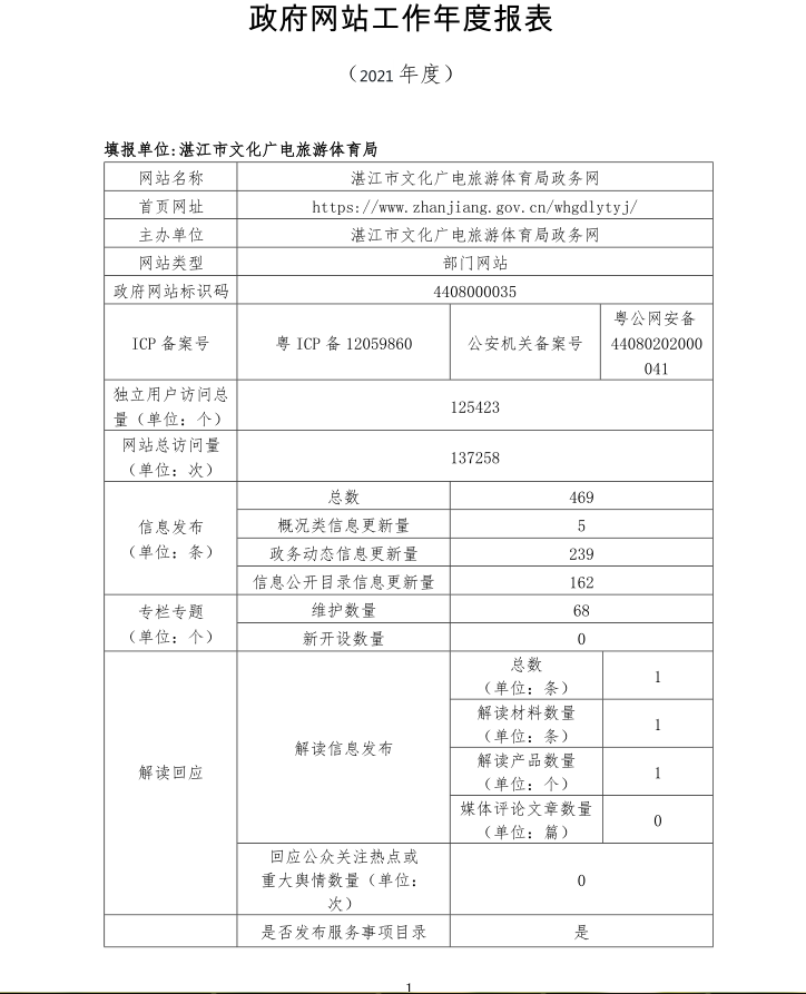2021年湛江市文化广电旅游体育局政府网站工作年度报表