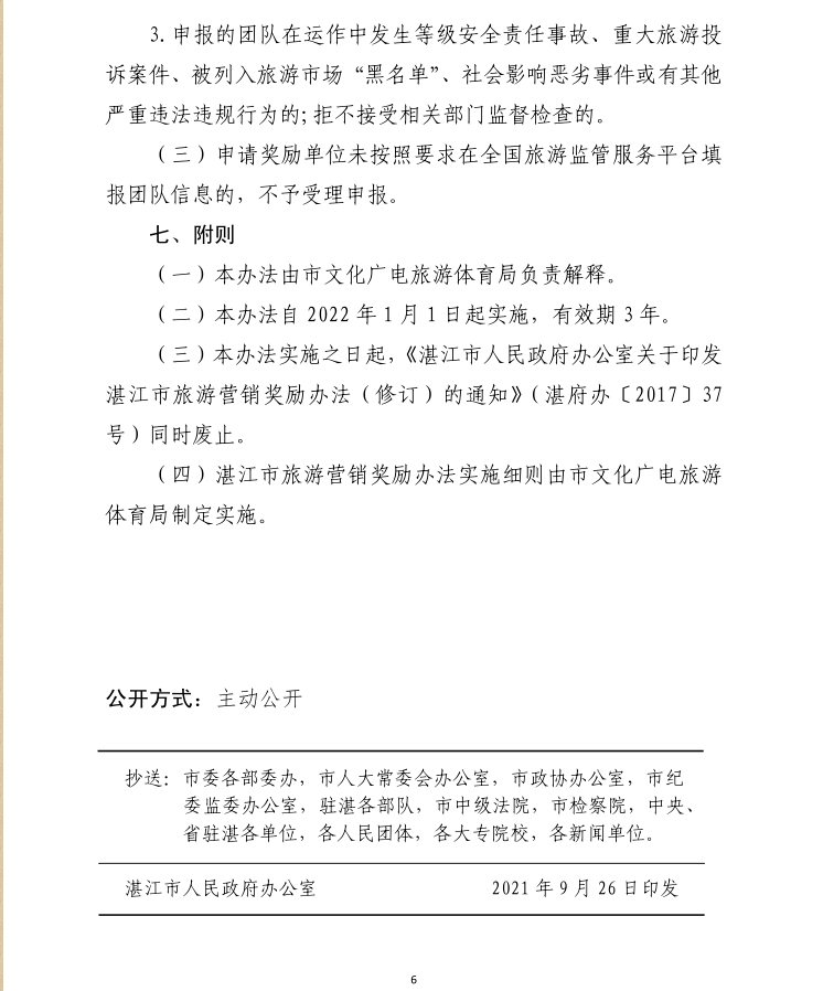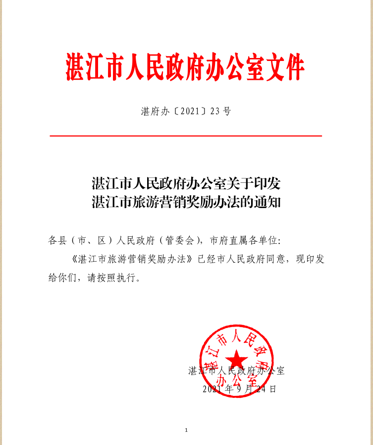 91吃瓜 办公室关于印发湛江市旅游营销奖励办法的通知