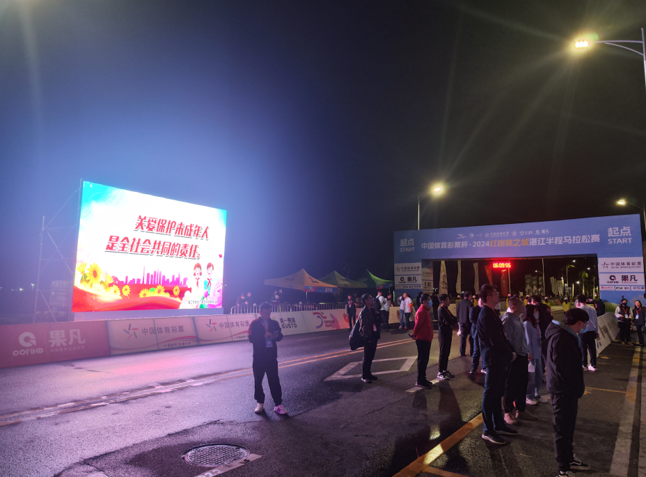 赛事起点现场LED显示屏宣传未成年人保护工作