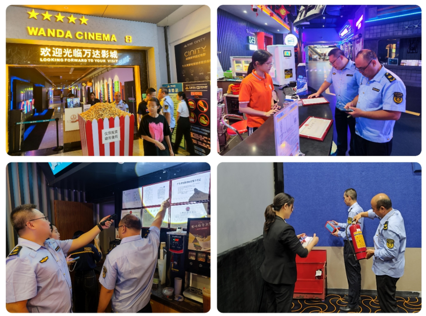 图为执法人员检查影院经营规范及落实消防安全工作