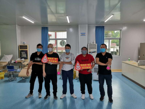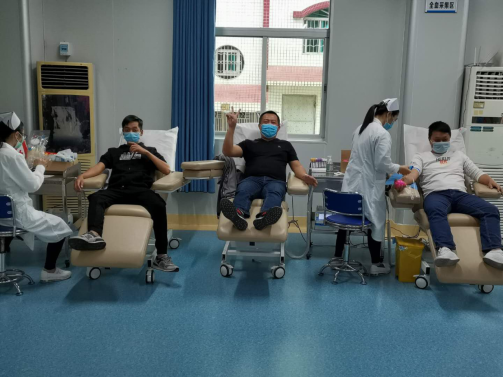 献血完毕,党员干部为抗疫加油鼓劲!