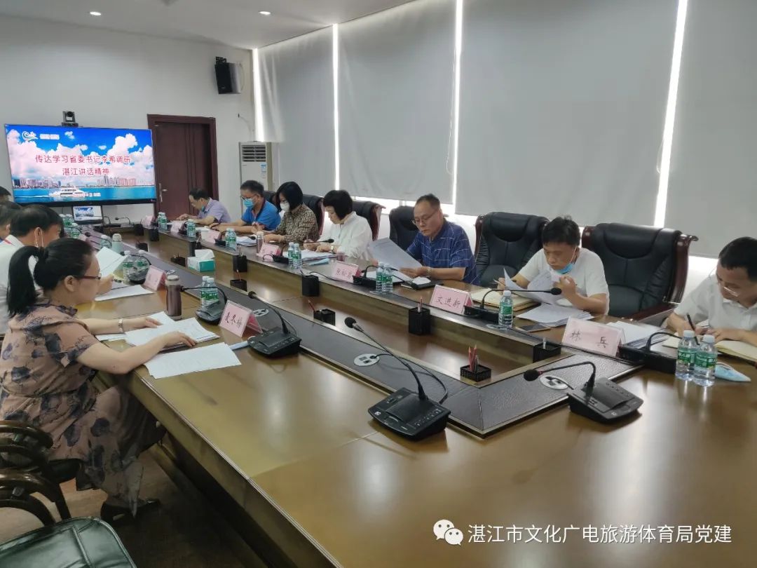 5月22日,湛江市文化广电旅游体育局党组理论学习中心组传达学习省委书记李希调研湛江讲话精神、习近平总书记在第十三届全国人大一次会议上的讲话精神和第二季度安全工作有关通知文件精神,局机关各科室科长列席参加会议。
