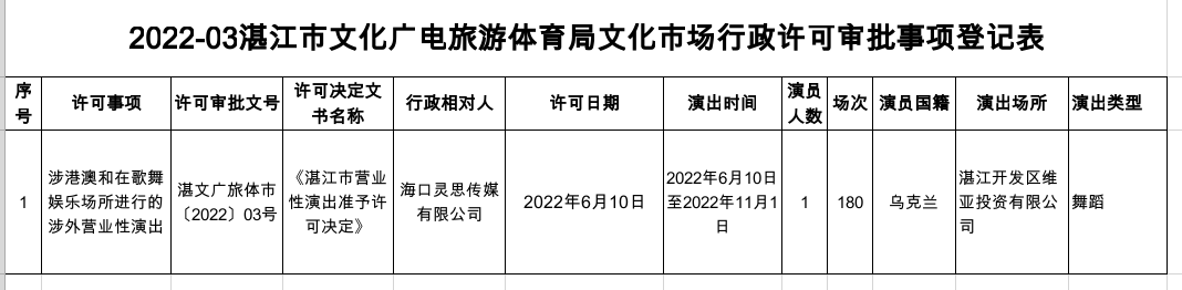 2022-03湛江市文化广电旅游体育局文化市场行政许可审批事项登记表