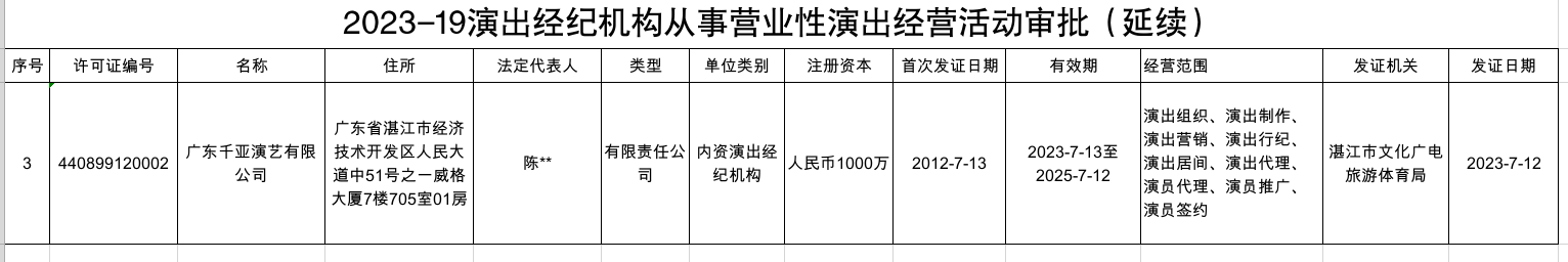 2023-19演出经纪机构从事营业性演出经营活动审批(延续)