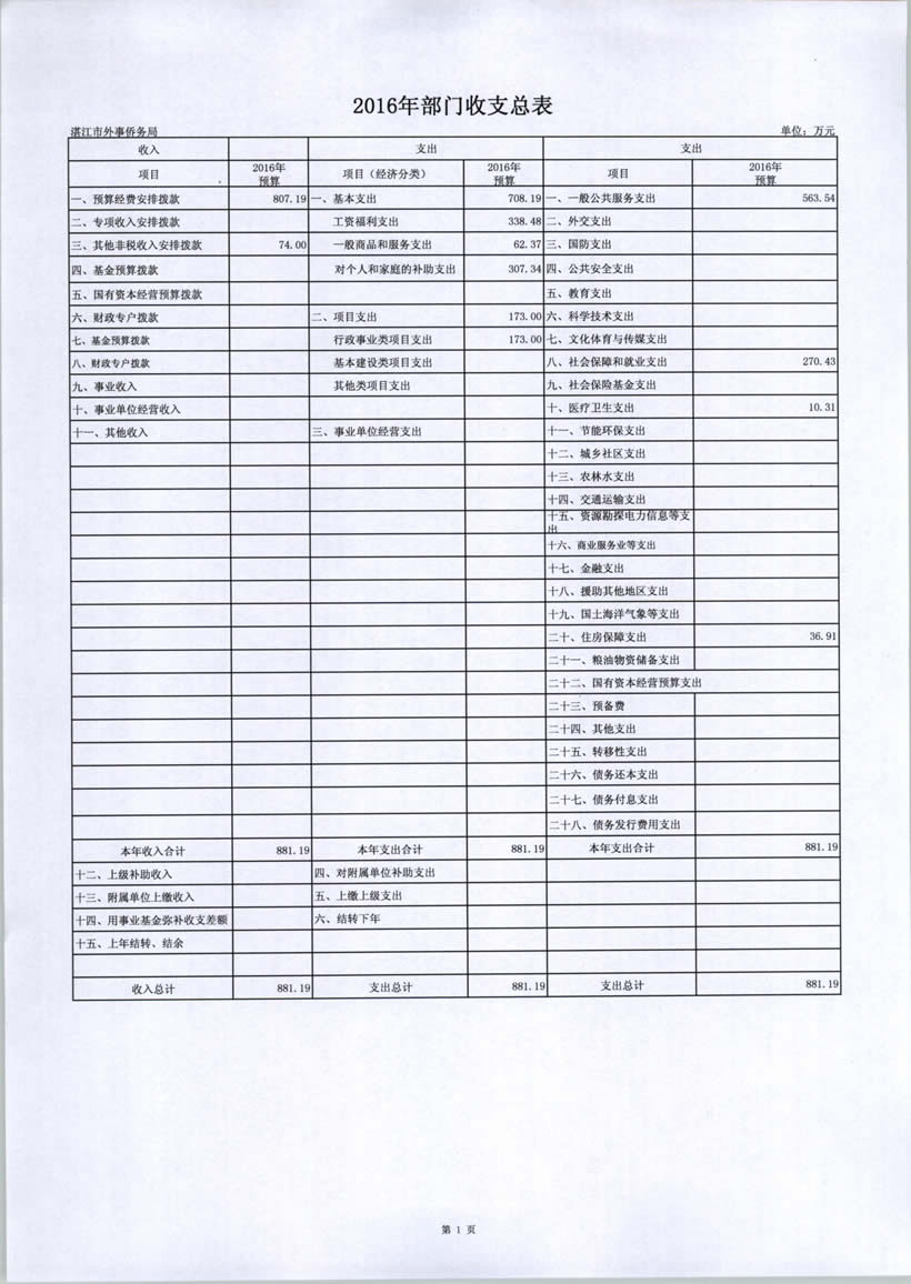 2016年部门收支总表