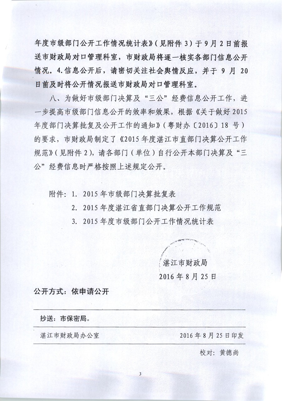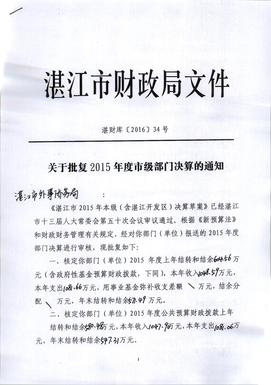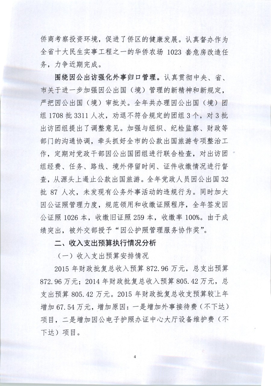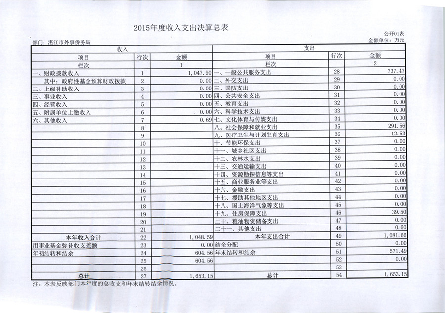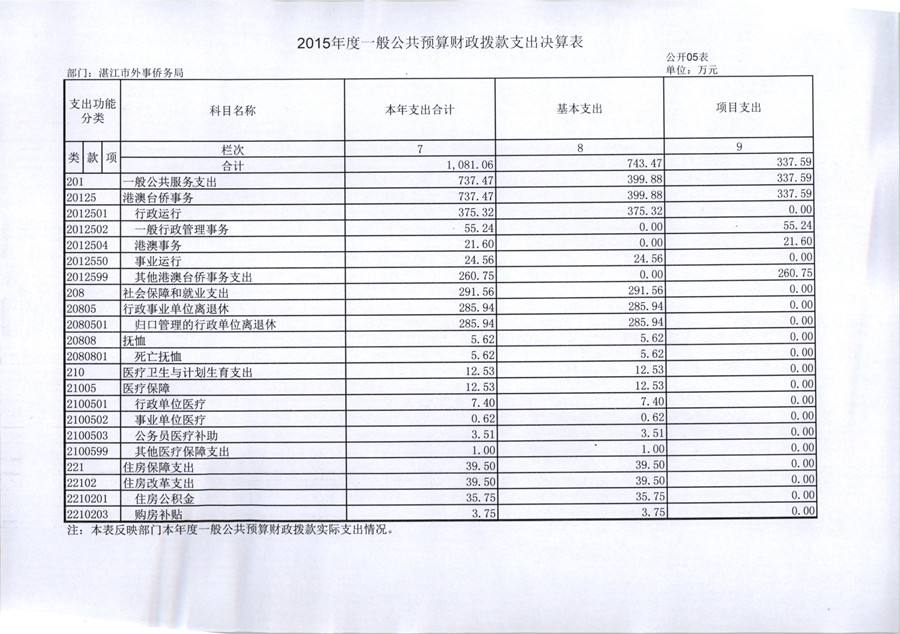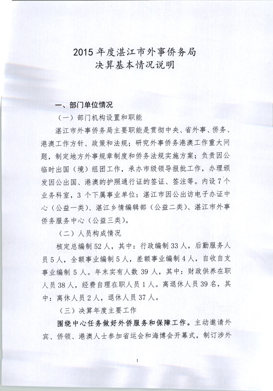 2015年湛江市外事侨务局决算公开情况(含部门决算情况说明及相关决算表格)