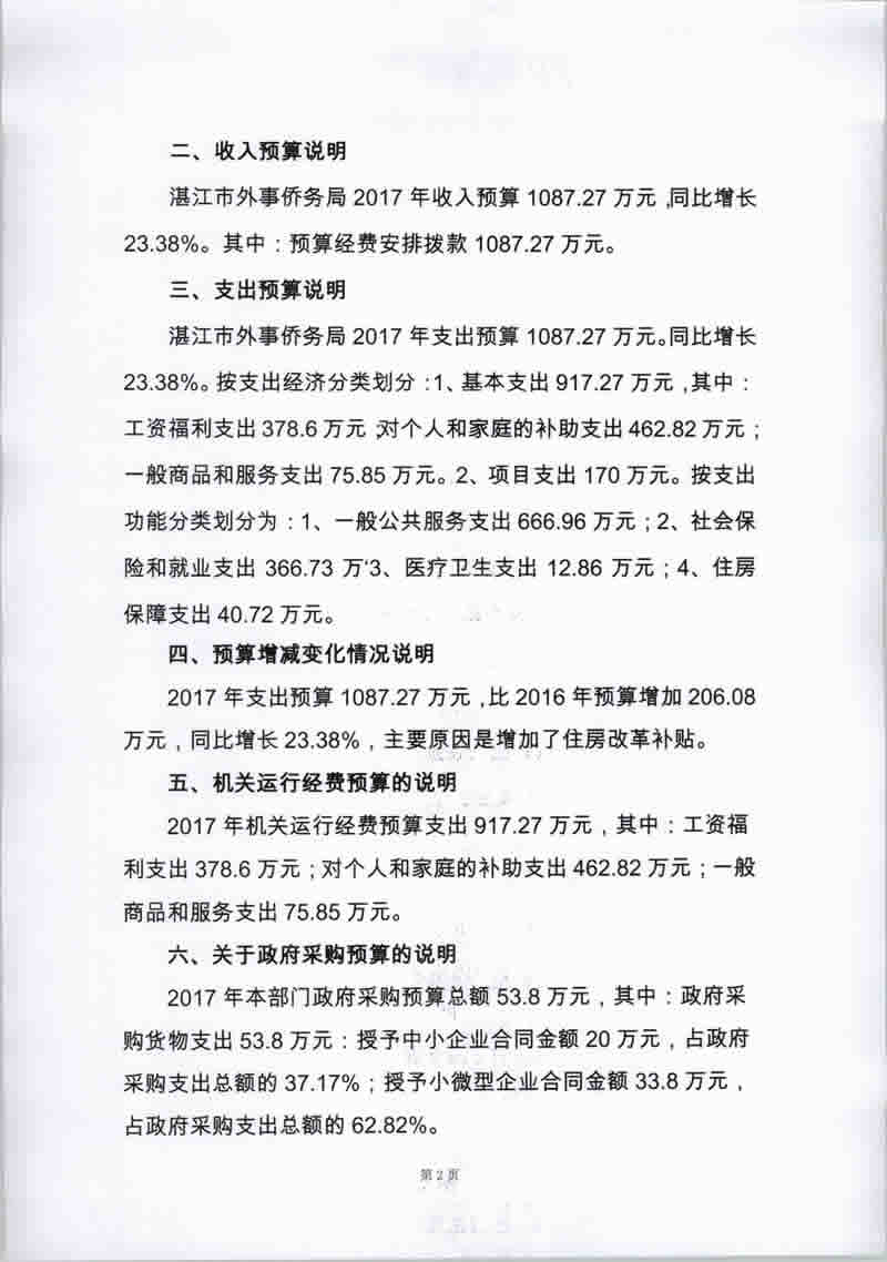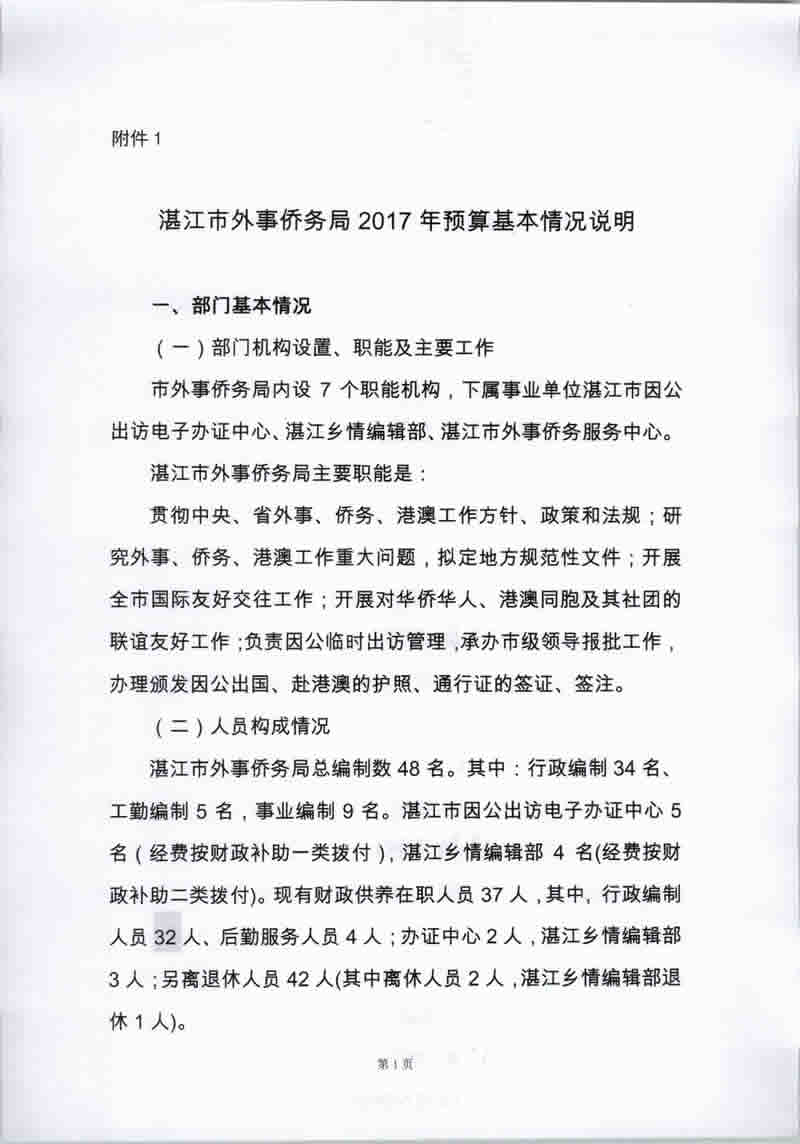 湛江市外事侨务局2017年部门预算(含基本情况及相关表格)
