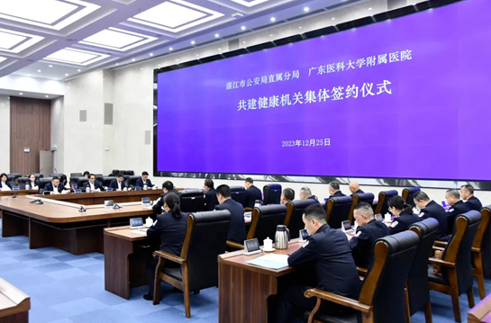 12月25日,广东医科大学附属医院与湛江市公安局六个直属分局(即经开区、赤坎、霞山、麻章、坡头和港航等分局)举行共建健康机关签约仪式。
