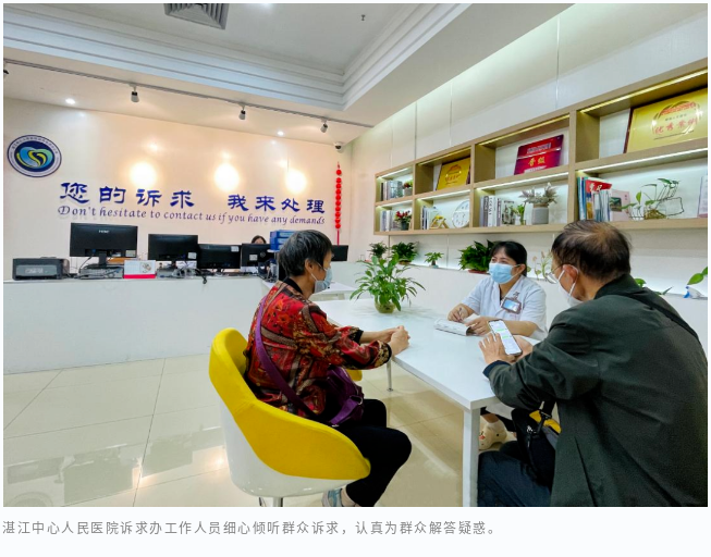 走进湛江中心人民医院诉求办,工作人员正有条不紊地处理各项业务,有的在线上接听电话,有的则和群众面对面,倾听、登记群众诉求,了解和处理群众困惑。“日常工作中,很多人来咨询退费收费、医保报销等问题,现场能解决的我们当场解决,比较难的我们5~10天内解决。”该院质量管理科科长李松表示,在医院醒目的位置,会贴着温馨提示,告诉群众有事可以找诉求办。