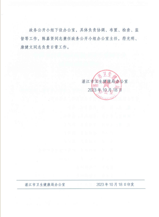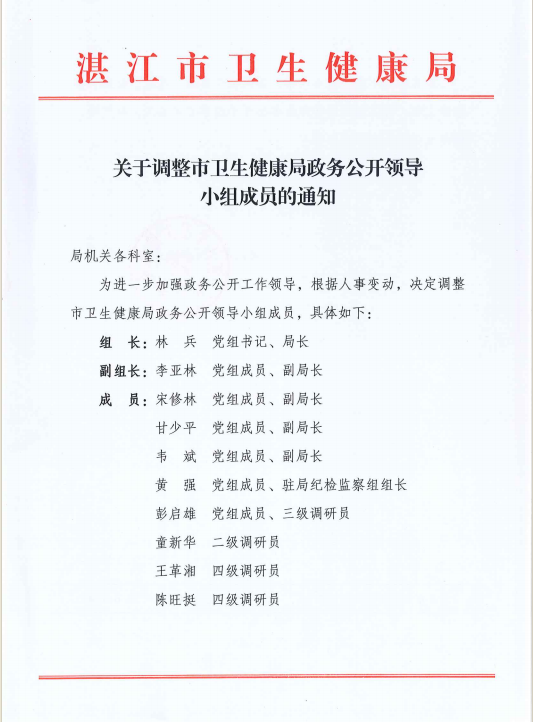 关于调整市卫生健康局91吃瓜公开 领导小组成员的通知