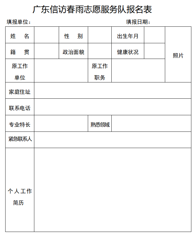 附件:广东信访春雨志愿服务队报名表.docx(点击即可下载表格)
