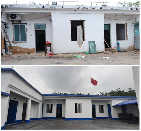 东海河管理所水塘站合流点作为雷州青年运河东海河河段泄洪排涝的关键节点,肩负着保障区域水利安全的重要职能,区位特殊、责任重大。然而受规划调整等历史遗留问题影响,合流点长期缺乏系统维护,基础设施损毁严重:墙面斑驳脱落、屋顶漏风渗水、门窗锈蚀变形、地面开裂破损、水电管线杂乱失修,不仅让基层职工面临“办公无定所、值守无保障”的困境,更直接制约了河道巡查、隐患排查、应急响应等核心工作的高效开展,成为阻碍东海河管理所提质增效的“老大难”问题。