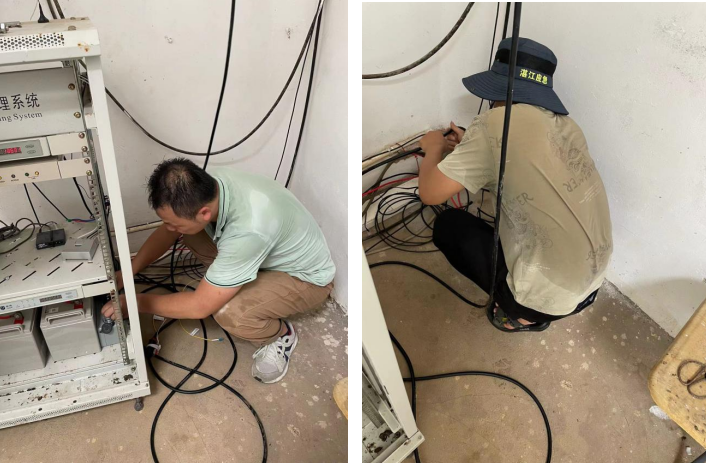 图为市地震局技术人员对雷州英利台站进行设备升级改造现场