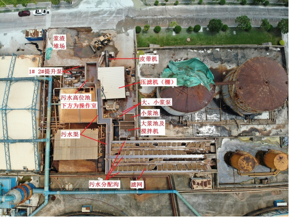 湛江晨鸣公司含浆渣污水通过排水管汇集到进水井,经过提升泵提升到斜网捞浆处,经水渠下到斜网进行浆渣及废水分离,废水返回到集水井进入污水处理厂,浆渣通过收集沟收集,经泵进入压滤机脱水收集外运。