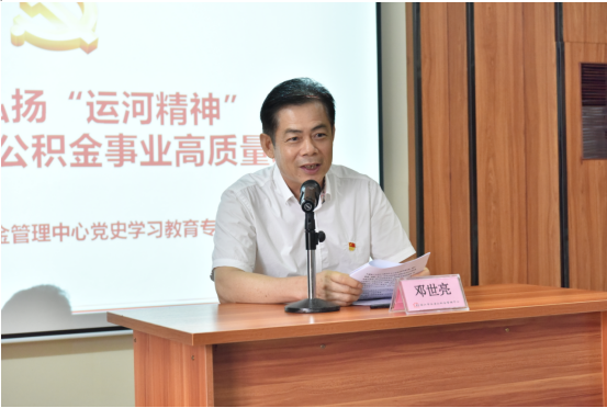 邓世亮同志强调,继承和弘扬运河精神,就必须把开展党史学习教育的成效落到住房公积金工作实际中去。一是坚定理想信念,培根铸魂。要坚定对马克思主义、共产主义的信仰、对中国特色社会主义的信念、对实现中华民族伟大复兴的信心,牢固树立正确的是非观、义利观、权力观、世界观,不断提高政治免疫力和抵抗力,持续练就“金刚不坏之身”。二是以人民为中心,不忘初心。要积极落实住房公积金普惠政策,深入调查研究察民情,创新政策业务解民忧,提升服务质量办实事,优化服务举措开新局,切实助力更多缴存职工圆上住房梦、安居梦。三是清正廉洁做人,遵规守矩。要严格遵守政治纪律和政治规矩,坚守法律底线、纪律底线、政策底线、道德底线,营造清正廉洁的政治生态,清清白白做人,干干净净干事。