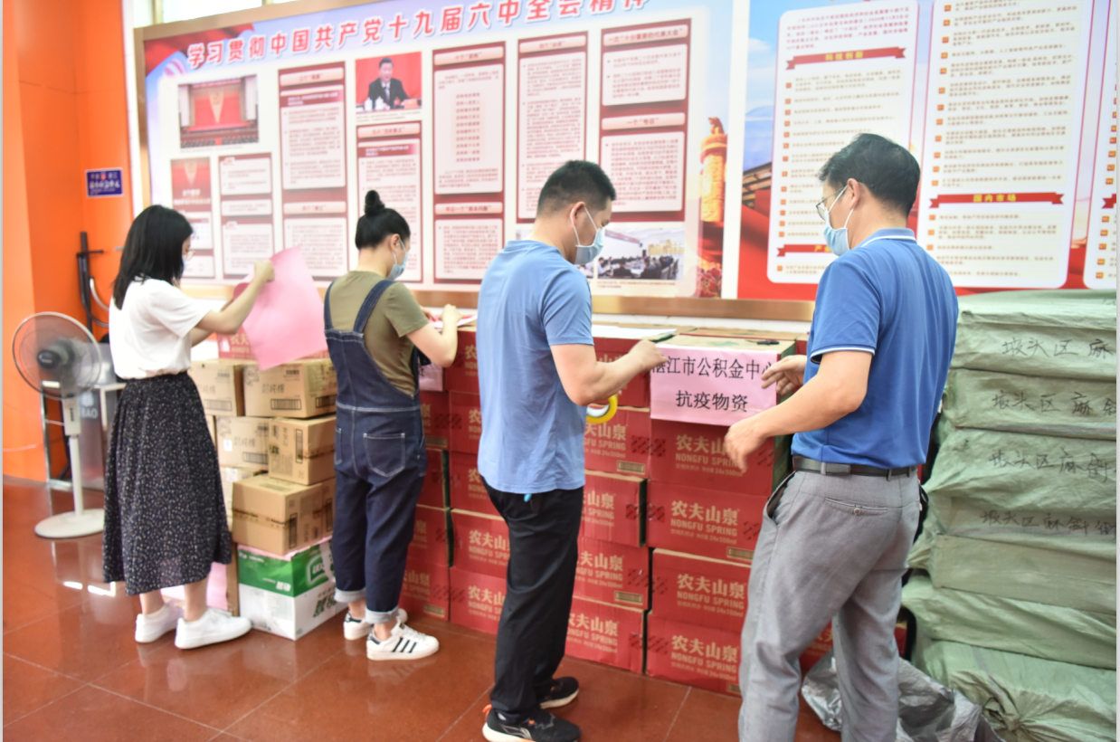 功成不必在我,功成必定有我。市住房公积金中心也是这支强大队伍的一部分。当了解到坡头区出现物资短缺的情况后,市住房公积金中心及时主动与市委组织部和市直机关工委沟通对接,并在市委组织部和市直机关工委的指导下,有条不紊地准备抗疫物资。