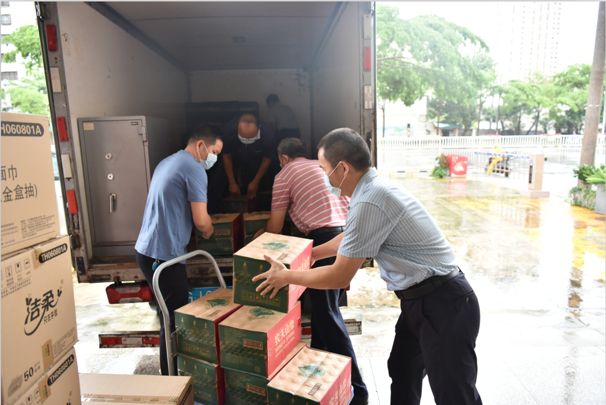 据统计,市中心捐赠了2400支矿泉水、800盒纸巾、200盒卫生巾等。捐赠物资虽然不算多,但这是我们公积金人的一片爱心,我们想用这片爱心温暖着这座美丽的滨海城市,我们想共同保卫大湛江!