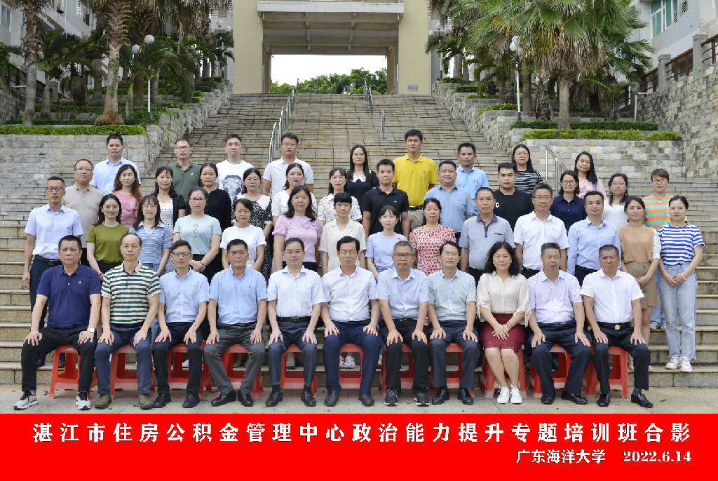 为深入学习贯彻习近平新时代中国特色社会主义思想,加强党风廉政建设,提高党员、干部职工政治素质,着力打造高素质过硬队伍,2022年6月14日至6月24日,市住房公积金中心在广东海洋大学举办两期政治能力提升专题培训班,全中心党员、干部职工参加培训。