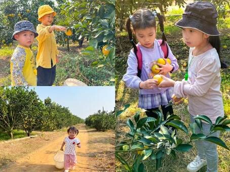 职工子女结伴摘橙子