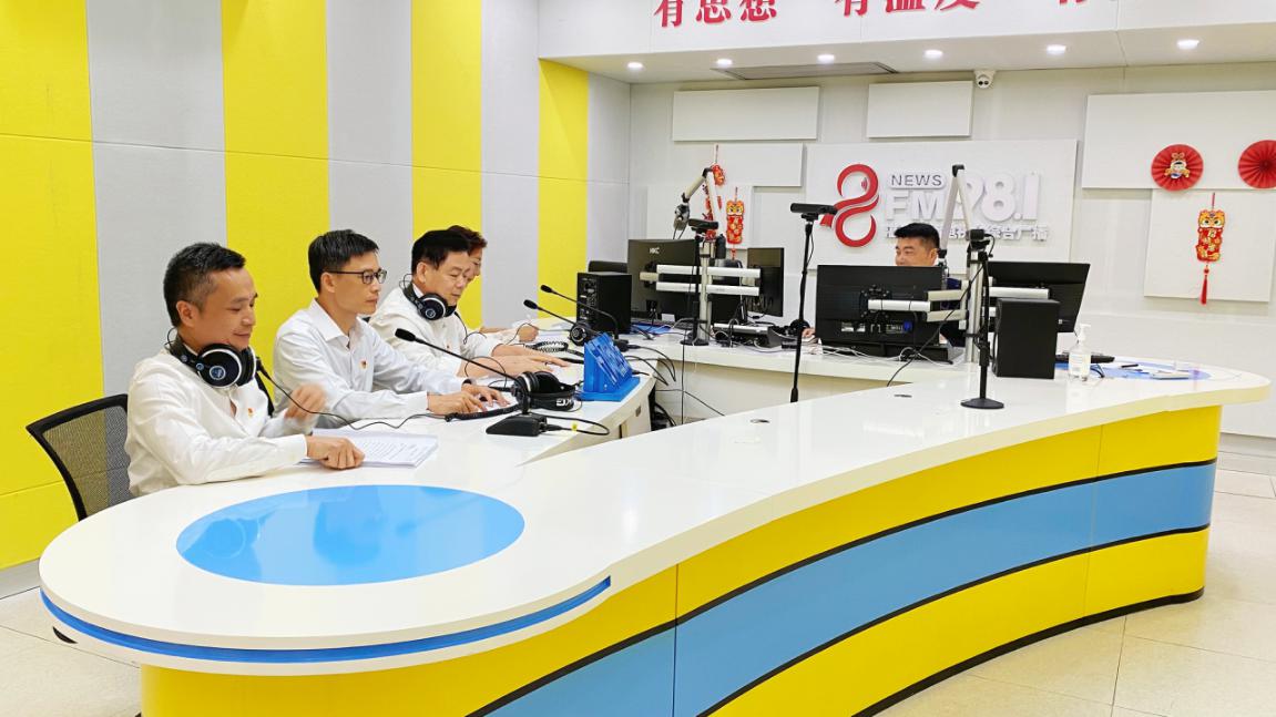 11月20日,市公积金中心党组书记、主任邓世亮带队走进湛江市广播电视台《行风热线》节目直播间,围绕“惠民公积金,服务暖人心”主题,通过广播、视频直播方式与广大市民群众在线交流,听取意见建议、回应群众关心关切。市公积金中心管理科、驻市行政服务中心窗口负责同志参加。