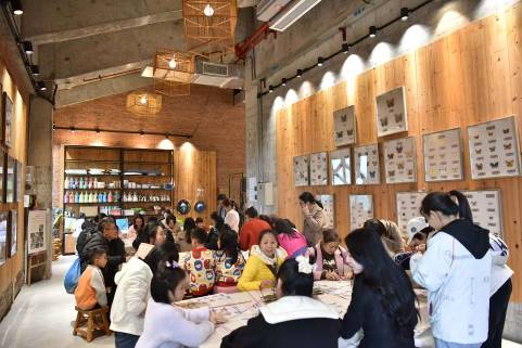 在大观园的足荣村手作博物馆,大家参观了傩舞面具、雷州风筝、雷州花灯等工艺展品,并在手工老师的耐心指导下,与孩子一起体验了草编创意制作。老师为职工和小朋友们介绍了雷州传统编织工艺的历史、制作材料、种类和工序,同时亲自示范了小挂件的编织方法。职工和小朋友们兴致勃勃地挑选喜欢的草编配色,认真按照教程编织起风格不一的“小驴”,在体验手工制作的快乐中感受传统编织工艺的魅力和价值。