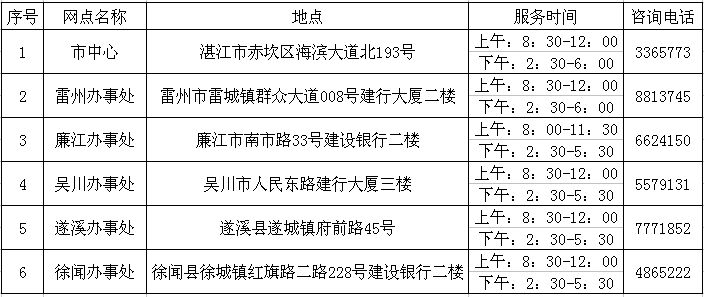 1、住房公积金缴存业务金融机构变更情况:目前,本市受委托办理住房公积金缴存业务的银行共计六家,比上年增加一家,包括建行湛江市分行、工行湛江分行、农行湛江分行、中行湛江分行、广东南粤银行、湛江市农村信用合作联社。