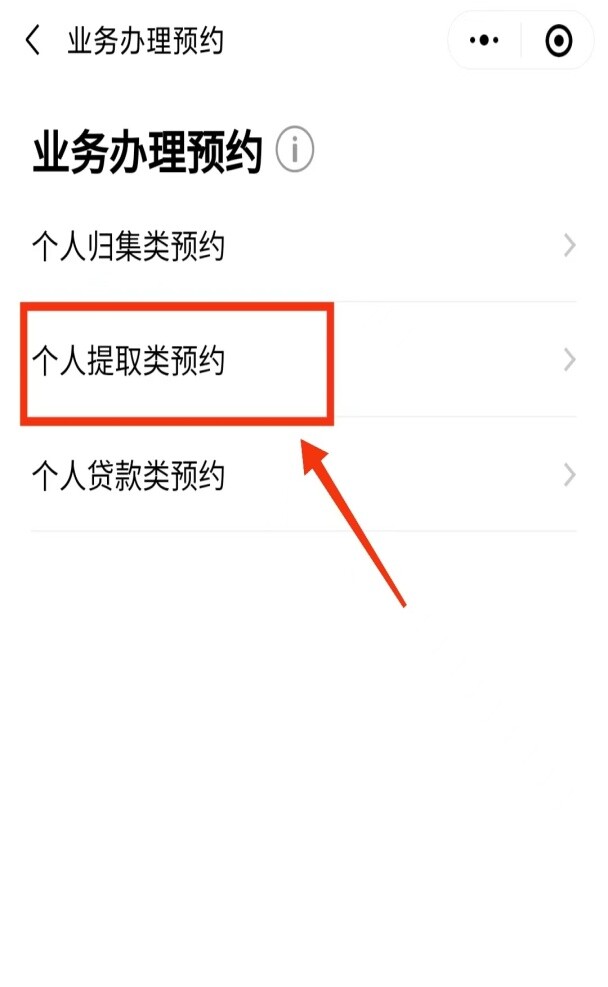 第三步:人脸识别登录后选择“个人提取类预约”。