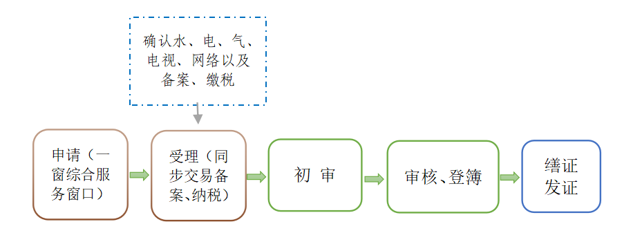 办理不动产登记时,申请人需要办理水电气有线电视开(过)户的,一并提交符合办理用水、用电、用气和用网的申请资料,做到一窗受理,一次交件,信息资料自动分发到用水、供电、燃气、电视、网络等业主办理系统。