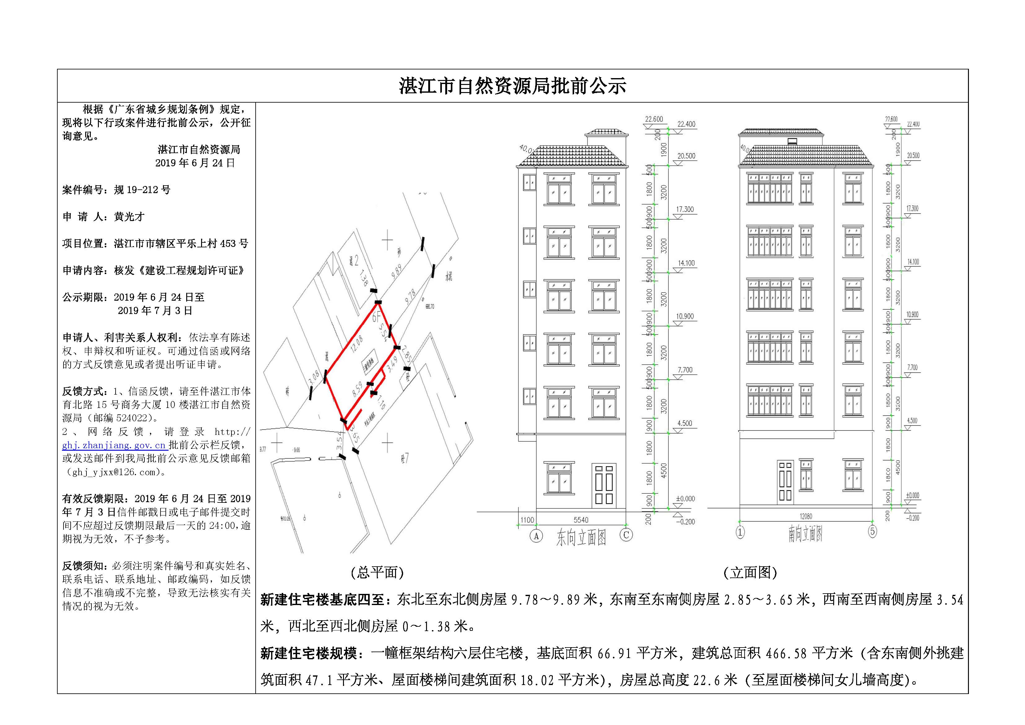 (黄光才)核发《建设工程规划许可证》批前公示