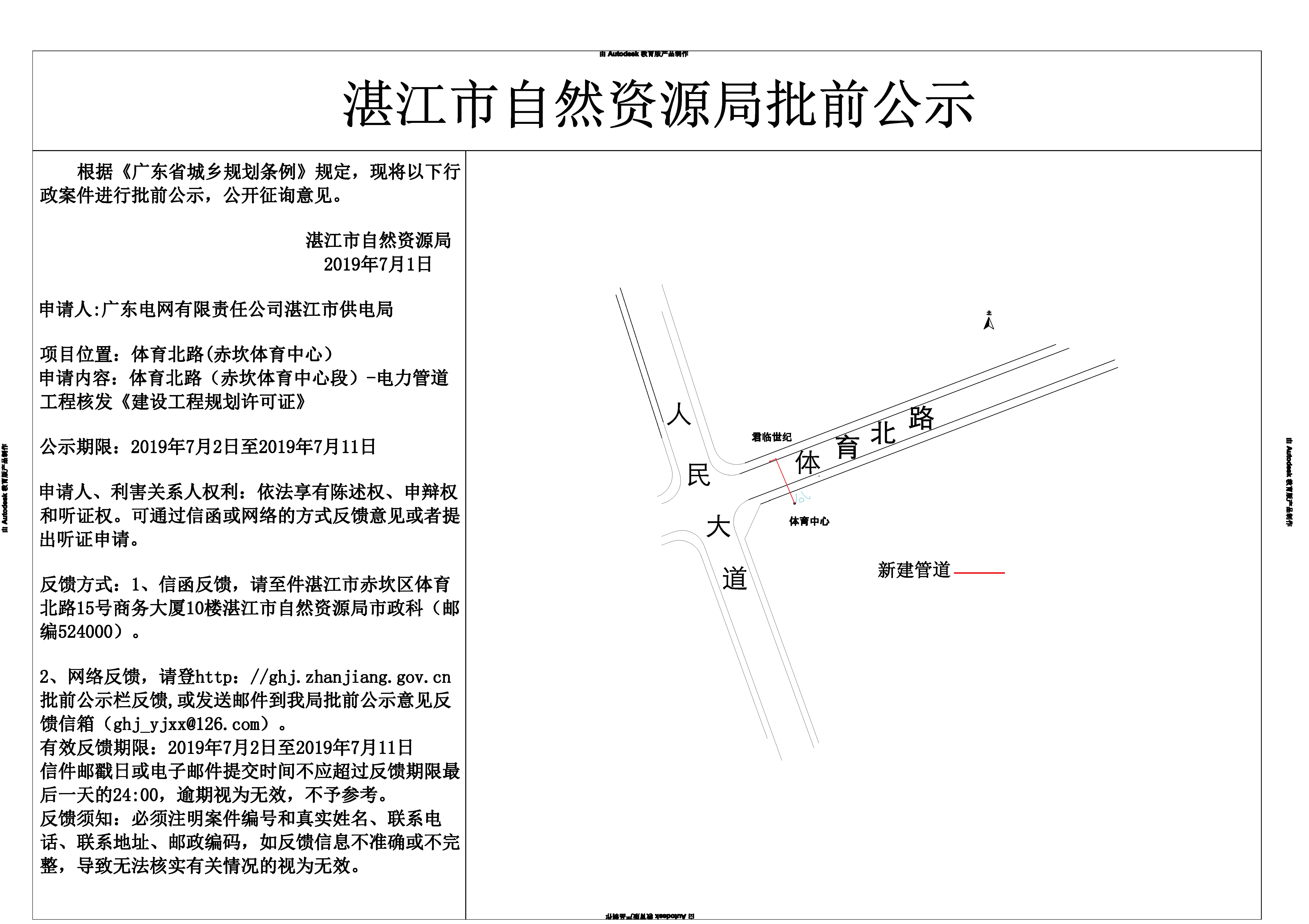 体育北路(赤坎体育中心段)-电力管道工程核发《建设工程规划许可证》批前公示