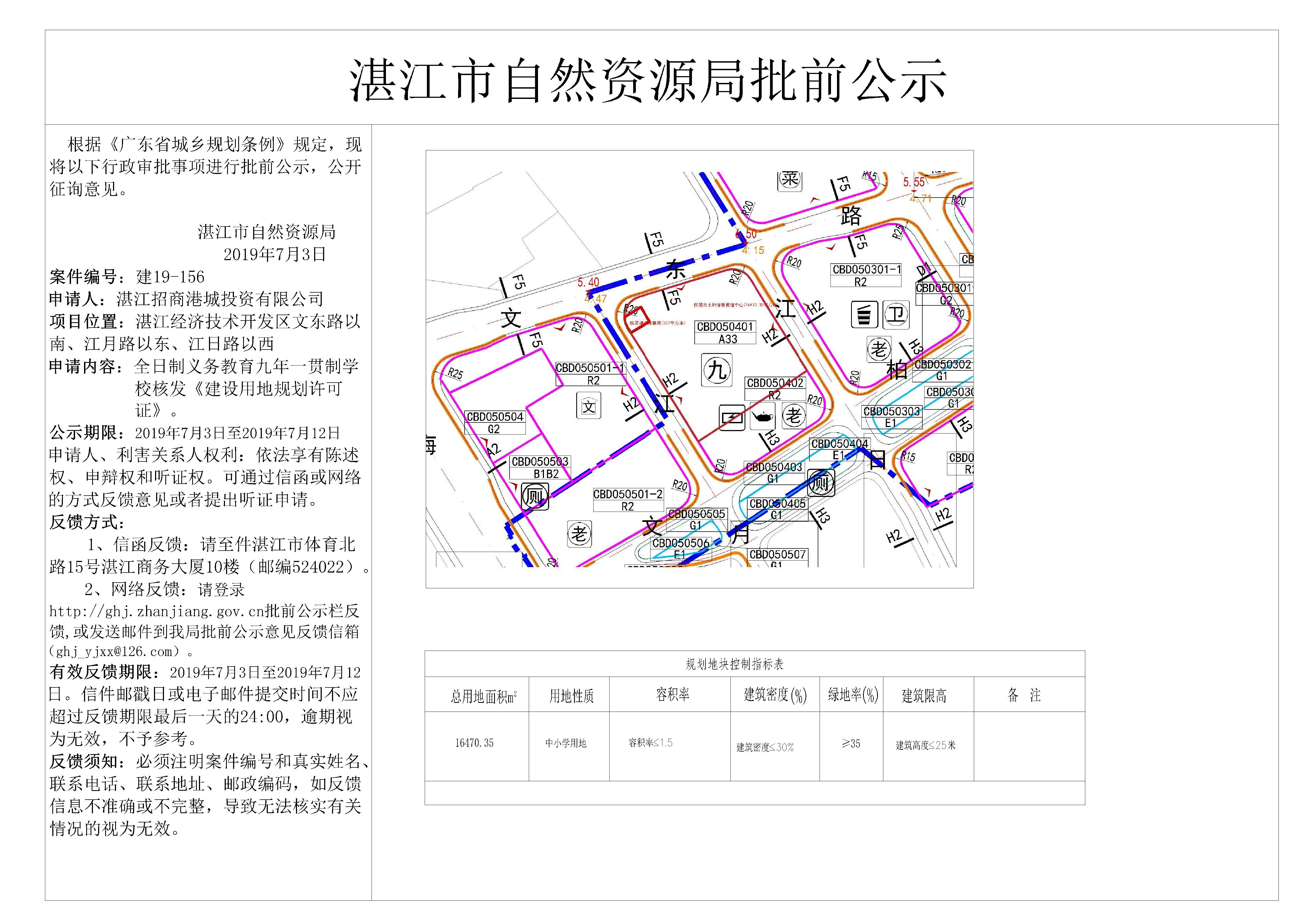 全日制义务教育九年一贯制学校核发《建设用地规划许可证》批前公示