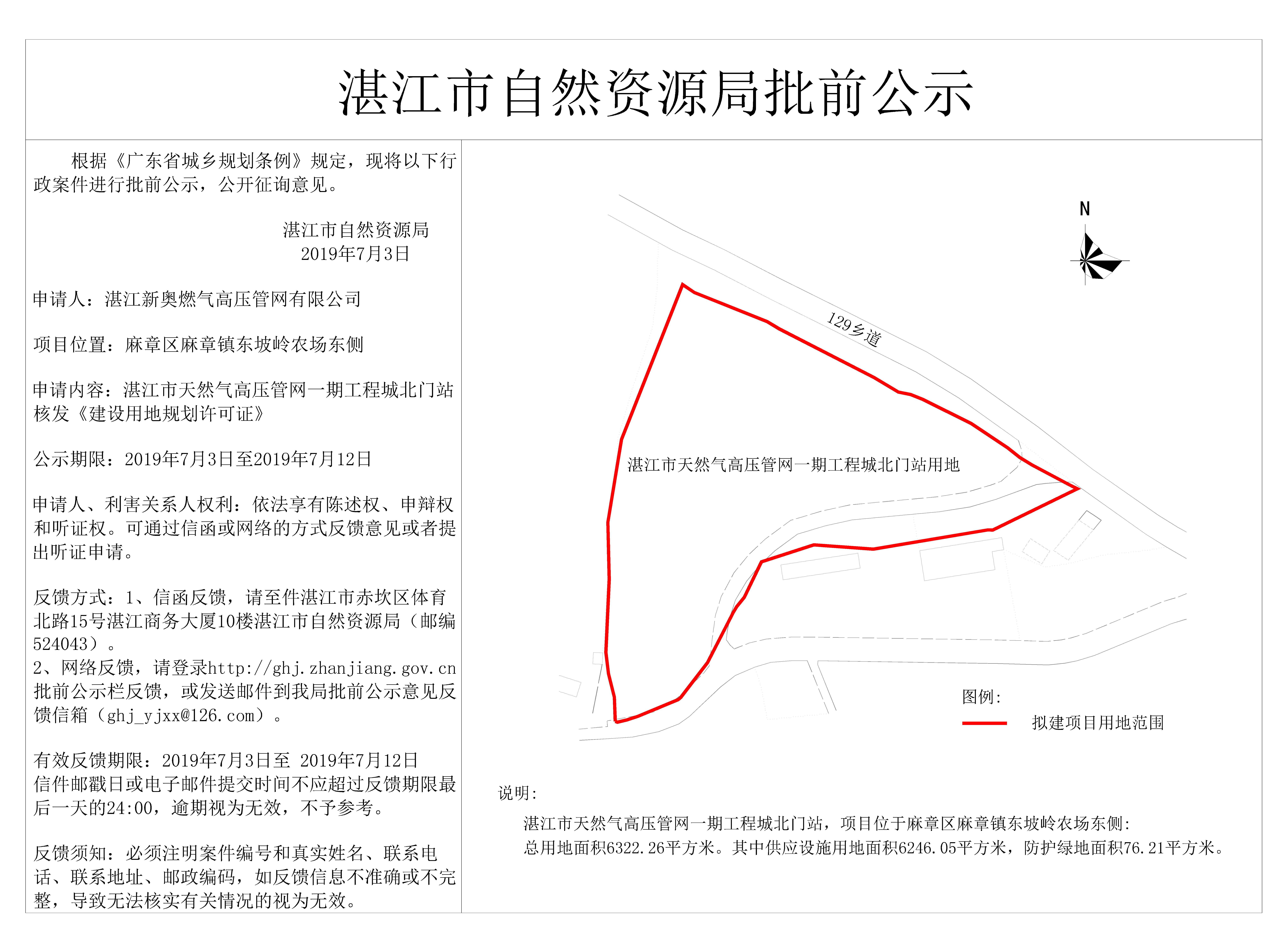 湛江市天然气高压管网一期工程城北门站核发《建设用地规划许可证》批前公示
