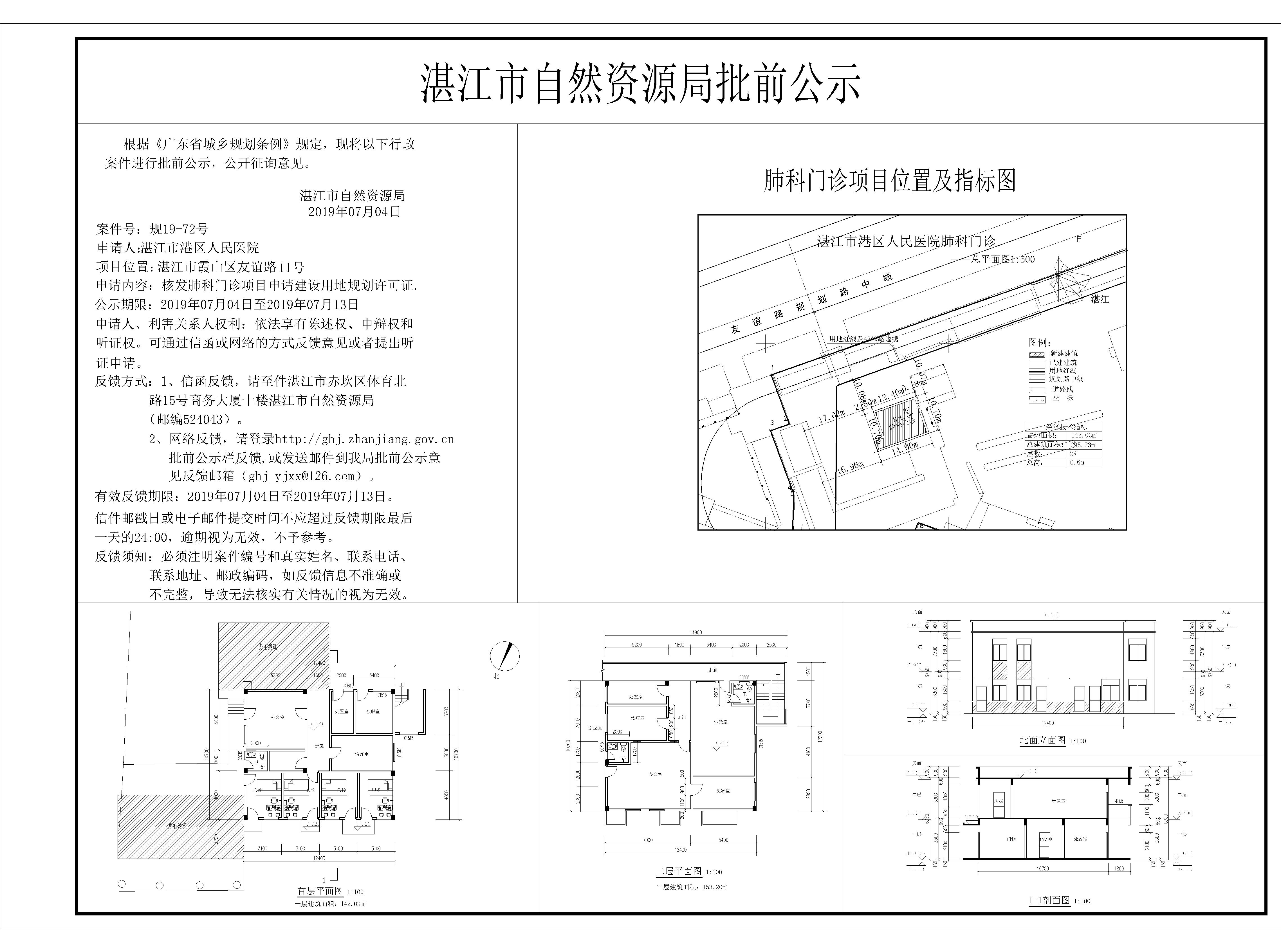 核发肺科门诊项目申请建设用地规划许可证批前公示